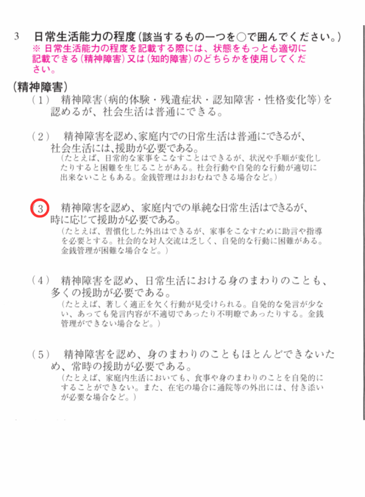日常生活能力の程度