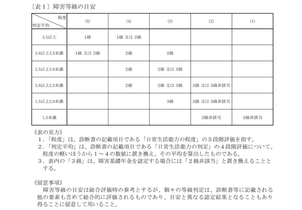 障害等級のガイドライン