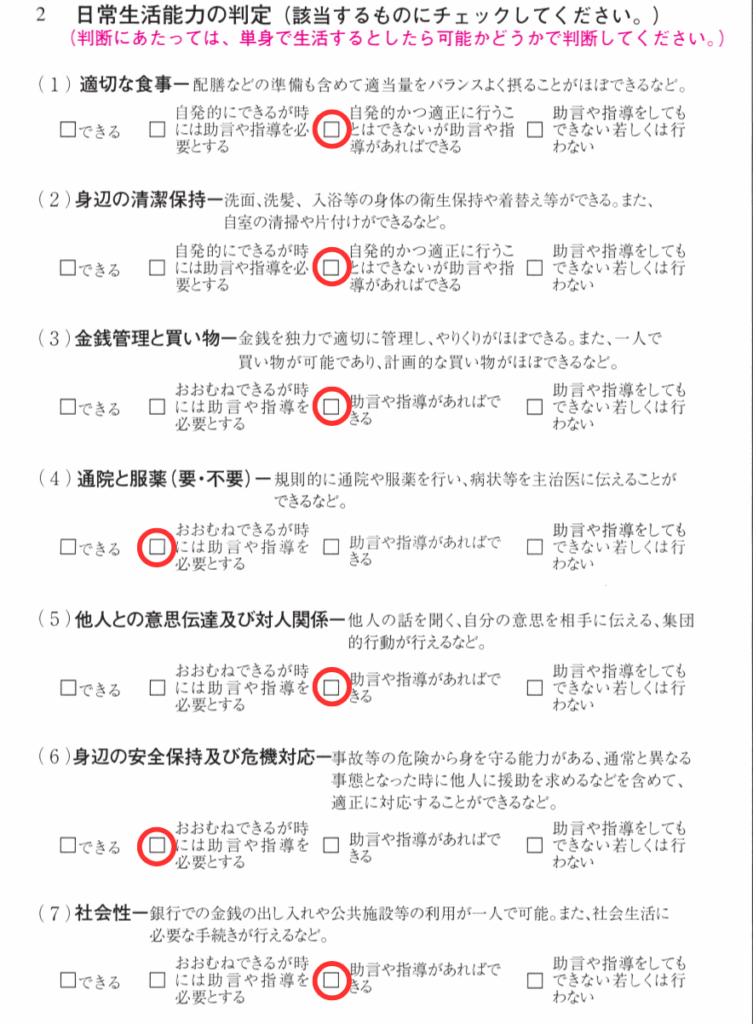 日常生活能力の判定
